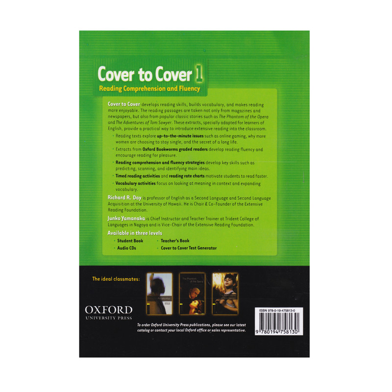 یکی از بهترین روشها برای تقویت مهارت خواندن زبان انگلیسی،مطالعه متون متنوع و متعدد به زبان انگلیسی است. با خواندن متون بیشتر دایره لغات و مهارت نوشتاری زبانآموز نیز بهبود خواهد یافت.مجموعه سه سطحی Cover to Cover مهارت های درک مطلب و لغات را با هم ترکیب کرده و یک دوره آموزشی قوی برای تقویت مهارت های خواندن به شما ارائه می دهد. متن های این مجموعه از مجلات، روزنامه ها و داستان ها انتخاب شده اند تا طیف گسترده ای از متن های متفاوت و جذاب را در اختیار شما قرار دهند.کتاب Cover to Cover دارای 12 درس از سری مجموعه کتابهایی است که مهارتهای خواندن و درک مطلب،واژگان بسیار کاربردی برای استفاده از متون مختلف و اصول و استراتژی هایی برای گسترش دایره لغات را توسعه میدهد. متون و ریدینگ های متنوع در این کتاب، نه تنها از مجلات و روزنامه ها گرفته شده اند، بلکه از داستانهای کلاسیک محبوب و مشهوری از قبیل:The Phantom of the Opera and The Adventures of Tom Sawer نیز گرفته شده است.