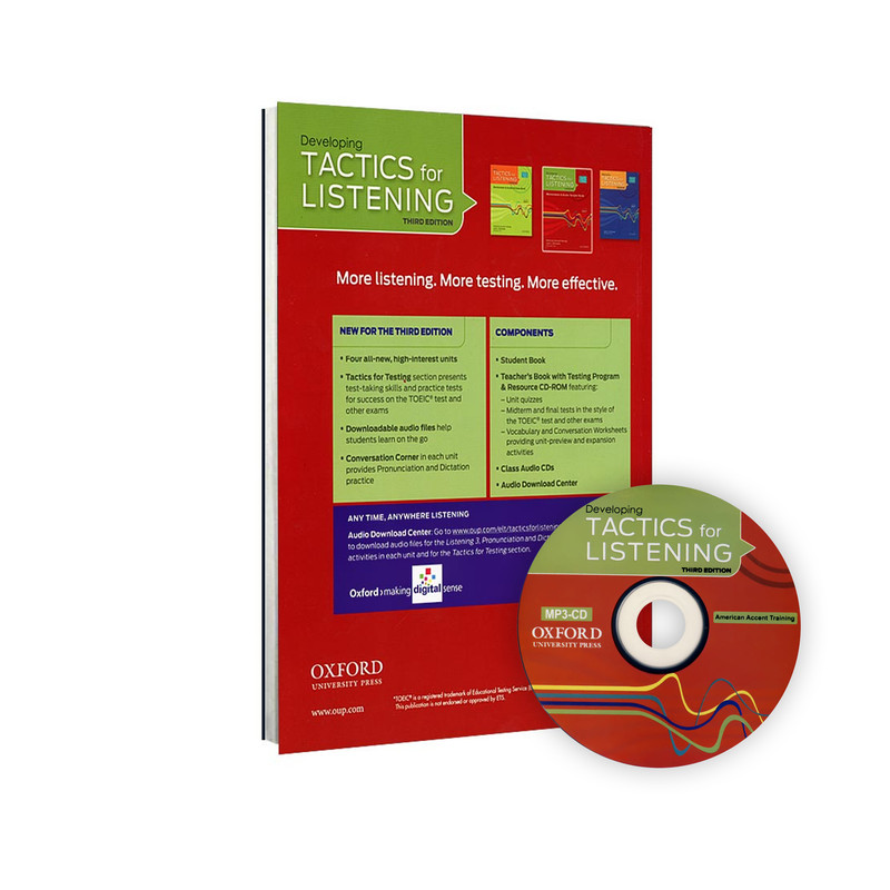 کتاب Developing Tactics for Listening نوشته آقای جک سی ریچاردز است که دومین سطح از مجوعه‌ی قدرتمند و کاربردی Tactics به حساب می‌آید. این مجموعه دارای سه سطح است که تمرکز اصلی آن برروی بهبود و افزایش مهارت شنیداری یا همان Listening Skill زبان‌آموزان است. تمرین ها و فعالیت های موجود در این کتاب به گونه ای طراحی شده‌اند که به تکنیک ها و تاکتیک های اساسی برای گوش دادن می‌پردازند. این کتاب با محوریت اصلی بر روی یادگیری لهجه آمریکایی طراحی شده است اما طیف وسیعی از لهجه ها و موضوعات را نیز پوشش میدهد. کتاب Developing Tactics for Listening نوشته‌ی جک سی ریچاردز در سطح متوسط است و میتوان آن را به عنوان یک کتاب اصلی یا جانبی به صورت خودخوان self-study یا در کلاس زبان انگلیسی به همراه معلم استفاده کرد.
