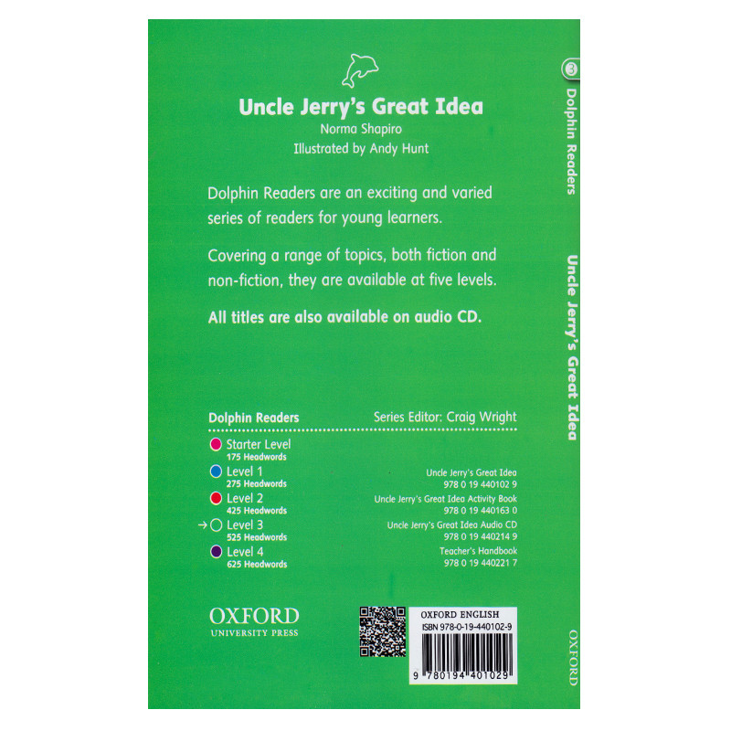 از مجموعه داستان های Dolphin در سطح های مختلف، به عنوان مکمل کتابهای آموزشی استفاده شده و بسته به نحوهی تدریس و زمان کلاس، پس از خواندن داستان تمارین مرتبط با هر بخش حل میشوند. تصاویر رنگی و جذاب در کتاب، زبانآموزان را به خوبی جذب کرده و همچنین پیچیدگی و موضوع هر داستان از این مجموعه، با توجه به سطح زبانآموز تغییر میکند. صفحهی چپ کتاب شامل بخشی از داستان و تصویر مرتبط با آن بوده و صفحهی راست، سوالات مرتبط با صفحهی قبل را مطرح میکند. این روش به زبانآموزان کمک میکند تا درک بهتری از متن داشته و داستان را بهتر متوجه شوند. در انتهای کتاب نیز بخشی به عنوان Workbook وجود دارد.