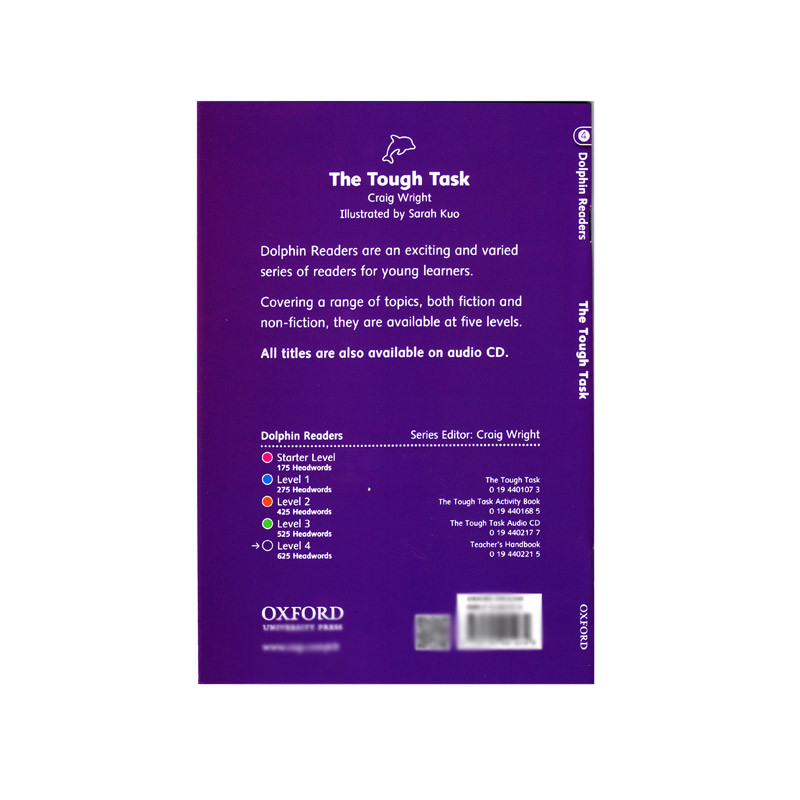 داستان The Tough Task در واقع دربردارنده مفاهیم و مضامین شبیه به یادگیری زبان است. این داستان انگلیسی روایتگر داستان کودکی است که در یادگیری زبان انگلیسی بسیار ضعیف است و معلم او از نمرات او ناراضی است. پیر مردی به او پیشنهاد میکند که به غار برود و بتواند موی ببر را برایش بیاورد. بار اول که پسر وقتی ببر را میبیند، فرار میکند. او هر روز به سراغ ببر میرود و با بر دوست میشود و بالاخره میتواند موی ببر را برای پیر مرد بیاورد. پیام اصلی داستان این است که اگر هر فردی برای یادگیری زبان هر روز وقت صرف کند میتواند زبان را به آسانی فراگیرد. بنابراین اگر میخواهید یادگیری کودکتان راحت شود، میتوانید به خرید مجموعه Dolphin Readers اقدام نمایید.