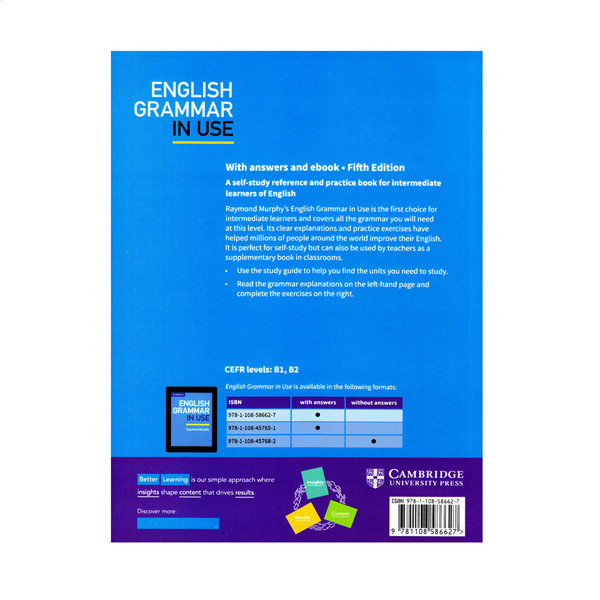 مطالعه و یادگیری گرامر زبان انگلیسی همیشه برای زبان آموزان سخت و دشوار است اما طرح دروس کتاب گرامر این یوز، این امکان را برای زبان آموزان ایجاد کرده تا بامطالعه درس به درس کلیه مباحث تخصصی و ارزیابی نهایی موجود در هر یک بخشها، بتوانند بهراحتی مباحث گرامری را مطالعه و یاد بگیرند. مجموعه Grammar in Use نوشته Raymond Murphy، کتابی است که بهصورت کاملاً تخصصی روی تقویت مهارت گرامری زبان آموزان تمرکز دارد. این کتاب با برخورداری از بخش های متفاوت و کاربردی، مجموعه کاملی برای آن دسته از افرادی است که قصد آمادگی برای شرکت در آزمون های تافل و آیتلس را دارند.