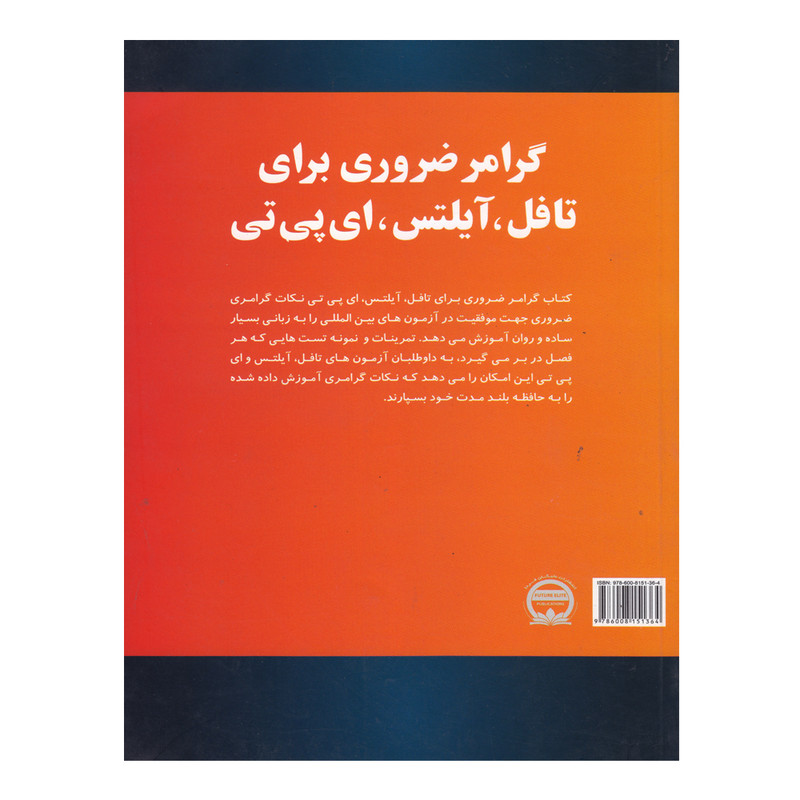 کتاب گرامر ضروری برای تافل، آیلتس، ای پی تی نکات گرامری ضروری جهت موفقیت در آزمون های بین المللی را به زبانی بسیار ساده و روان آموزش میدهد.