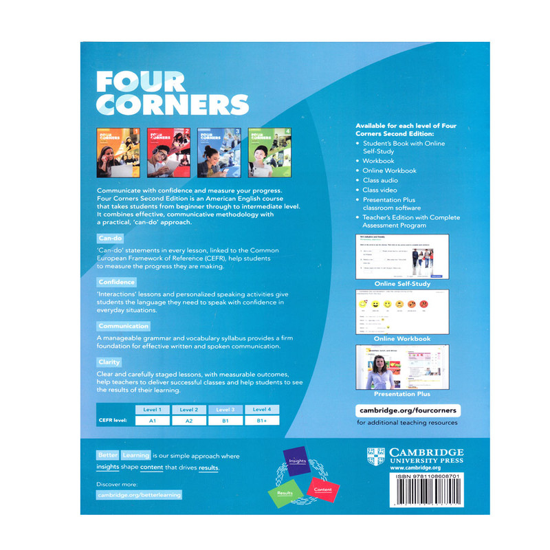 این کتاب شامل یک عدد DVD ویدویی و تمرین های درس به درس برای افزایش تسلط بر روی مباحث Four Corners 3 می باشد.