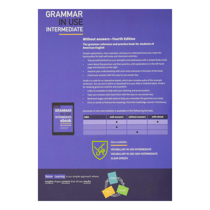 مجموعه Grammar In Use منبعی بسیار سودمند برای فراگیری دستور زبان است که هر درس آن متشکل از تمرین ها و نکات اضافی دستوری برای یادگیری آسان و جذاب می باشد. این کتاب دارای کتاب دانش آموز، کتاب معلم، و یک سی دی آموزشی برای تمرین های کتاب به خصوص تمرین های شنیداری است. این مجموعه دارای یک نرم افزار نیز می باشد که از طریق آن می توانید به تمام بخش های کتاب دسترسی آسان داشته باشید.