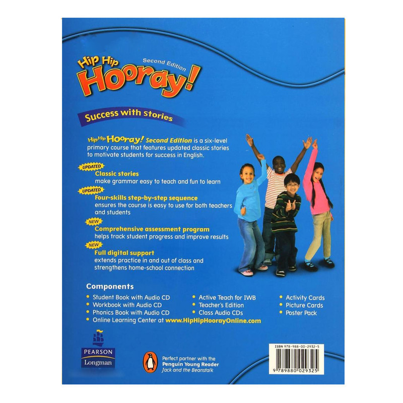 مجموعه آموزشی Hip Hip Hooray در شش سطحی که انتشارات پیرسون برای آموزش زبان به انگلیسی ویژه کودکان به چاپ رسانده‌ است. این مجموعه که در بسیاری از آموزشگاه‌های زبان خارجه تدریس می‌شود، در پی آن است که زبان انگلیسی را از طریق داستان‌های قدیمی آموزش دهد، که با این روش آموزش گرامر زبان انگلیسی بسیار ساده‌تر می‌شود. روند شکل‌گیری و گردآوری قدم به قدم هر چهار مهارت به گونه‌ای طراحی شده است که هم برای زبا...