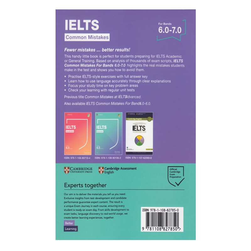 اولین قدم در انتخاب منابع آیلتس، مشخص‌کردن نوع آزمون (جنرال یا آکادمیک) است. آزمون آیلتس جنرال برای افرادی طراحی شده که هدف‌شان مهاجرت به کشورهای انگلیسی‌زبان مانند انگلستان و استرالیاست. آیلتس آکادمیک هم برای کسانی است که قصد ادامه تحصیل در مقاطع کارشناسی، ارشد و یا دکترا دارند. کتاب IELTS Common Mistakes for Bands 6.0-7.0 برای هردو شکل آزمون، کاربردی و مفید است و اشتباهات واقعی شرکت‌کنندگان در آزمون آیلتس را برجسته می‌کند و در عین‌حال نشان می‌دهد که چگونه می‌توان از آن‌ها اجتناب کرد. این منبع ارزشمند، برای افرادی که به‌دنبال کسب امتیاز 6 تا 7 هستند، یک پیشنهاد مناسب محسوب می‌شود. در هر درس آن یک مشکل کلیدی مورد بحث قرار می‌گیرد و تمرینات مربوط به آزمون با توضیحات ملموس نشان می‌دهد که چگونه می‌توان از زبان انگلیسی برای رسیدن به نمره موردنظر خود استفاده کرد. همچنین زبان‌آموز قادر است آن‌چه را یاد می‌گیرد با آزمون‌های منظم بررسی کند. تمرین‌های متنوعی در کتاب آمده و به‌شکل‌های گوناگون برای بررسی مطالب آموزش داده‌شده، استفاده می‌شود. پس از پاسخگویی به تمرین‌ها می‌توان با مراجعه به انتهای کتاب، پاسخ‌ها را با جواب‌های صحیح مقایسه کرد. نویسنده کتاب با سابقه بیش از 12سال در ELT منبعی غنی برای زبان‌آموزان ارائه داده‌است که با کمک آن می‌توان از خطاهای کاربردی آزمون آیلتس جلوگیری کرد.