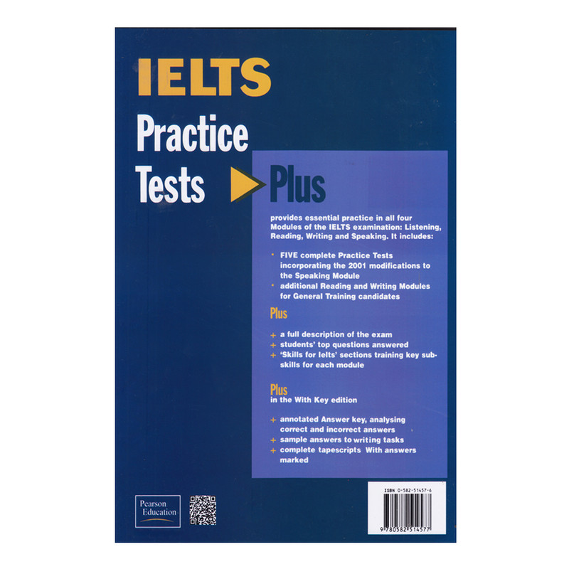 کتاب IELTS Practice Tests Plus یکی از کتاب‌های مجموعه‌ی IELTS Practice Test بوده و توسط انتشارات لانگمن منتشر شده است.این کتاب با ارائه‌ی تمرین‌های ضروری و کاربردی برای چهار مهارت اصلی Listening، Reading، Writing و Speaking، باعث تسلط زبان‌آموزان بر این چهار مهارت خواهد شد.پنج تست آزمون IELTS که در این مجموعه قرار دارند، به طور جامع و کامل گردآوری شده و شرکت‌کنندگان را برای این آزمون آماده می‌سازند.این کتاب با دارا بودن پاسخ‌نامه، برای مطالعه‌ی خودخوان-self study- بسیار مناسب بوده و همچنین اساتید مربوطه می‌توانند از این مجموعه در کلاس‌های درسی خود به عنوان کتاب جانبی استفاده کنند.