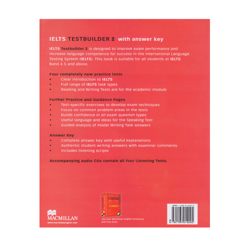 مجموعه کتاب های IELTS Test Builder مجموعه ای دو سطحی است که توسط انتشارات مک میلان برای افرادی که می خواهند آمادگی خود برای آزمون آیلتس را بالا ببرند منتشر گردیده اند. این مجموعه مناسب زبان آموزانی است که می خواهند نمره 6 را در آزمون آیلتس آکادمیک کسب کنند.
