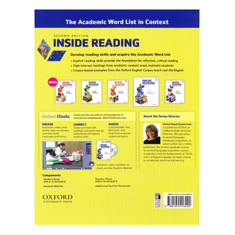 یکی از بهترین روش ها برای بالا بردن مهارت انگلیسی خود، خواندن متون متنوع و متعدد به زبان انگلیسی است. همچنین با خواندن متن های بیشتر مهارت نوشتاری شما نیز افزایش چشمگیری خواهد داشت. از فوائد این مجموعه این است که خواندن متون اداری، آکادمیک، علمی و تخصصی را فرا بگیرید و بتوانید در حین خواندن بدون کاهش سرعت، درک مطلب درست و کاملی از متن خوانده شده به دست بیاورید. همچنین پاسخ تمامی تمارین کتاب ها در این مجموعه قرار داده شده است و نیز به برای هر سطح نرم افزار آزمون و تست هر سطح به صورت interactive قرار گرفته است. برخی از ویژگی های این کتاب کتاب inside Reading دارای تمرین های بسیار زیادی می باشد که تمامی آنها در راستای پیشرفت روزافزون شما طراحی شده اند و شما با انجام دادن آنها می توانید خیلی سریع پیشرفت کنید، این کتاب بر اساس لهجه بریتیش طراحی شده است و یکی از محصولات انتشارات آکسفورد می باشد که در زمینه آموزش زبان انگلیسی معتبرترین انتشارات است، در کتاب inside Reading می توانید متونی از تمامی موضوعات شامل علمی و داستانی را مشاهده کنید. این کتاب دارای ۱۰ درس می باشد که در انتهای هر درس تمرینات متعددی گنجانده شده است که شما بعد از مطالعه درسنامه باید اقدام به انجام دادن آن ها کنید، در صورتی که معنی کلمه ای را بلد نبودید می توانید به واژه نامه ای که در انتهای کتاب آمده است مراجعه کنید، در این واژه نامه می توانید تعداد بسیاری زیادی از لغاتی که در درسنامه های این کتاب آمده است را مشاهده کنید، با این که تمرکز اصلی این کتاب بر روی توانایی خواندن متون مختلف می باشد ولی شما با مطالعه این کتاب اطلاعات بسیار زیادی نیز درباره نحوه صحبت کردن به زبان انگلیسی و همینطور نحوه نوشتن متون مختلف به زبان انگلیسی بدست می آورید.