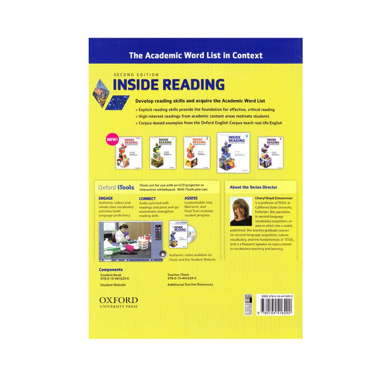 یکی از بهترین روش ها برای بالا بردن مهارت انگلیسی خود، خواندن متون متنوع و متعدد به زبان انگلیسی است. همچنین با خواندن متن های بیشتر مهارت نوشتاری شما نیز افزایش چشمگیری خواهد داشت. از فوائد این مجموعه این است که خواندن متون اداری، آکادمیک، علمی و تخصصی را فرا بگیرید و بتوانید در حین خواندن بدون کاهش سرعت، درک مطلب درست و کاملی از متن خوانده شده به دست بیاورید. همچنین پاسخ تمامی تمارین کتاب ها در این مجموعه قرار داده شده است و نیز به برای هر سطح نرم افزار آزمون و تست هر سطح به صورت interactive قرار گرفته است. برخی از ویژگی های این کتاب کتاب inside Reading دارای تمرین های بسیار زیادی می باشد که تمامی آنها در راستای پیشرفت روزافزون شما طراحی شده اند و شما با انجام دادن آنها می توانید خیلی سریع پیشرفت کنید، این کتاب بر اساس لهجه بریتیش طراحی شده است و یکی از محصولات انتشارات آکسفورد می باشد که در زمینه آموزش زبان انگلیسی معتبرترین انتشارات است، در کتاب inside Reading می توانید متونی از تمامی موضوعات شامل علمی و داستانی را مشاهده کنید. این کتاب دارای ۱۰ درس می باشد که در انتهای هر درس تمرینات متعددی گنجانده شده است که شما بعد از مطالعه درسنامه باید اقدام به انجام دادن آن ها کنید، در صورتی که معنی کلمه ای را بلد نبودید می توانید به واژه نامه ای که در انتهای کتاب آمده است مراجعه کنید، در این واژه نامه می توانید تعداد بسیاری زیادی از لغاتی که در درسنامه های این کتاب آمده است را مشاهده کنید، با این که تمرکز اصلی این کتاب بر روی توانایی خواندن متون مختلف می باشد ولی شما با مطالعه این کتاب اطلاعات بسیار زیادی نیز درباره نحوه صحبت کردن به زبان انگلیسی و همینطور نحوه نوشتن متون مختلف به زبان انگلیسی بدست می آورید.