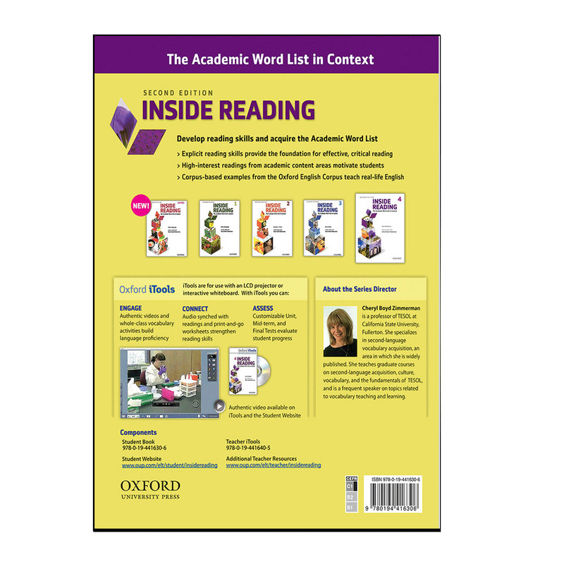 Inside Reading مجموعهای منسجم و با لهجه امریکن برای آموزش مهارت خواندن زبان انگلیسی (Reading) است. این سری از کتابها با کمک متون زبان انگلیسی به همراه تمرین در موضوعات مختلف مهارت Reading زبانآموز را تقویت میسازند. این مجموعه برای تقویت مهارت Reading آزمونهای آکادمیک و جنرال مورد استفاده قرار میگیرد. برای هر سطح فایل صوتی با لهجه امریکن نیز در CD همراه ارائه گردیده است. یکی از بهترین روشها برای تقویت مهارت خواندن زبان انگلیسی، مطالعه متون متنوع و متعدد به زبان انگلیسی است.