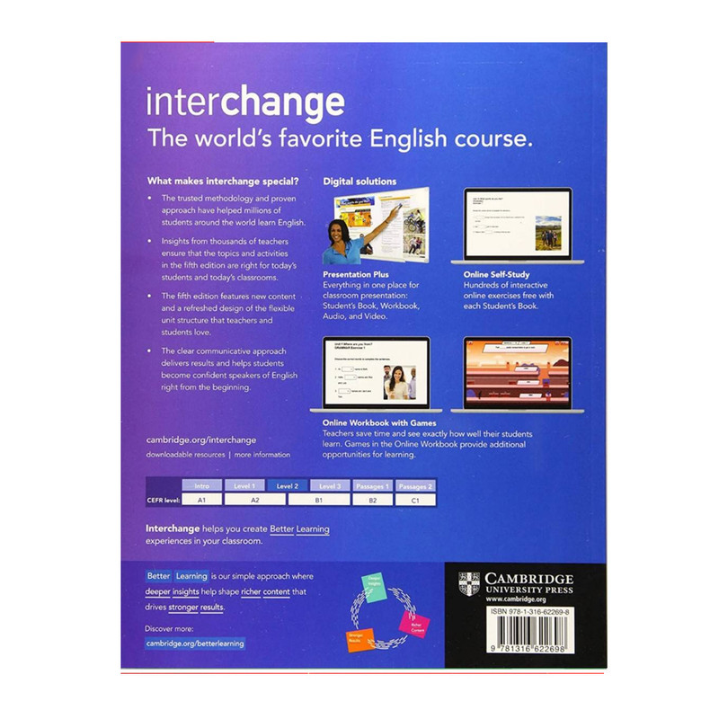 کتابهای این مجموعه در بسیاری از موسسات آموزش زبان و توسط اساتید بسیاری تدریس میشود. در هر درس به بررسی یک موضوع خاص پرداخته است. درس ها از بخشهای مختلفی تشکیل شده و با ارائه متن و تمرینهای متنوع سعی در آموزش مهارت های اصلی و واژگان زبان انگلیسی به شیوهای جذاب را دارد. دانشجویان در دوره های آموزش زبان و همه کسانی که به طور حرفه ای در توسعه و استفاده از آزمون های زبان تحصیل می کنند، این منبع را یکی از متون معتبر و جامع در راستای مقاصد و اهداف خود تلقی می کنند. مجموعه حاضر درچهار سطح براي، بزرگسالان و نوجوانان مي باشند. هر واحد از هر سطح به آموزش دستور زبان انگليسي، توسعه مهارت هاي صحبت کردن و گوش دادن پرداخته است. از ويژگي هاي اين مجموعه برنامه درسي مرتبط، آموزش دستور زبان، آموزش لغت و آموزش تلفظ است. اين مجموعه شامل پيشنهادات از معلمان ودانش آموزان سراسر جهان است. اين مجموعه همانند ويرايش هاي قبل،داراي 4 سطح مختلف است.اين مجموعه با تاکيد بر مهارت هاي Speaking و Listening به پيش مي رود. محتوا از طريق CD همراه کتاب در اختيار زبان آموز قرار مي گيرد.