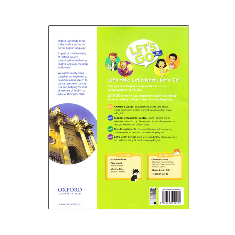 یکی از پر فروش ترین و پر استفاده ترین مجموعه کتاب های آموزشی زبان برای کودکان در سراسر جهان! کتاب هاي اين مجموعه در 7 سطح (Let’s Begin, Let’s go 1,2,3,4,5,6) مطابق با سيستم آمريکايي همراه با فايل صوتي و کتاب کار در مراحل اوليه با ارائه نکاتي جهت تقويت مهارت گفتاري و شنيداري، روند پرسش و پاسخ همراه با آهنگ، شعر و بازي به آموزش تلفظ صحيح و روان خواني متون و تست مطابق با استانداردهاي آموزشي کمبري...