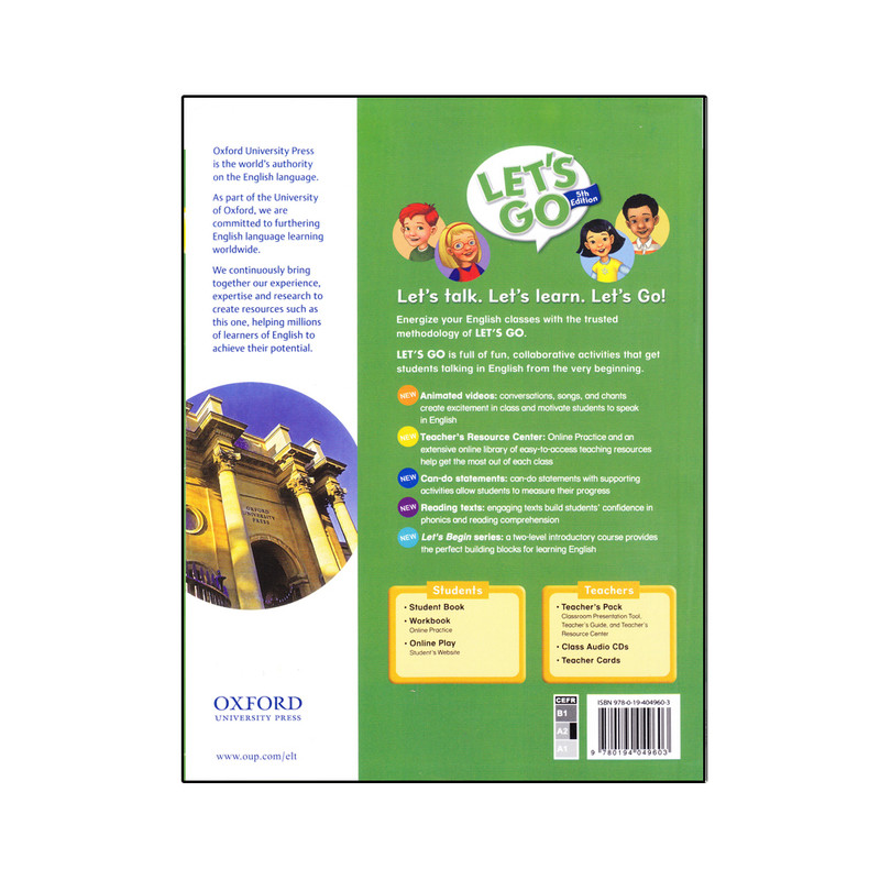 کتاب هاي اين مجموعه در 7 سطح (Let’s Begin, Let’s go 1,2,3,4,5,6) مطابق با سيستم آمريکايي همراه با فايل صوتي و کتاب کار در مراحل اوليه با ارائه نکاتي جهت تقويت مهارت گفتاري و شنيداري، روند پرسش و پاسخ همراه با آهنگ، شعر و بازي به آموزش تلفظ صحيح و روان خواني متون و تست مطابق با استانداردهاي آموزشي کمبريج به شکل لوح فشرده و در سطوح بالاتر جهت تقويت مهارت هاي چهارگانه ارائه مي شود.