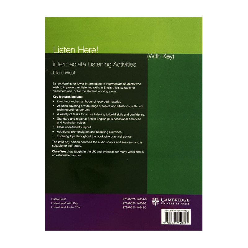 این کتاب راهنمایی مناسب برای زبان آموزان پایین تر از سطح متوسط میباشد که قصد ارتقا مهارت شنیداری زبان انگلیسی خود تا سطح متوسط رو به بالا را دارند . علاوه بر قابلیت خودخوانی این کتاب، به عنوان منبعی مناسب برای استفاده در سر کلاس نیز میتوان از آن استفاده نمود، این کتاب شامل 28 درس که در برگیرنده محدوده عریضی از موضوعات و موقعیت ها و فعالیت ها برای تقویت مهارت شنیداری میباشد، است.ويرايش جديد اين مجموعه طيف وسيعي از موضوعات و شرايط را در بر مي گيرد و تنوع فعاليت هاي شنيداري، به ايجاد مهارت و اعتماد به نفس در زبان آموزان مي پردازد.