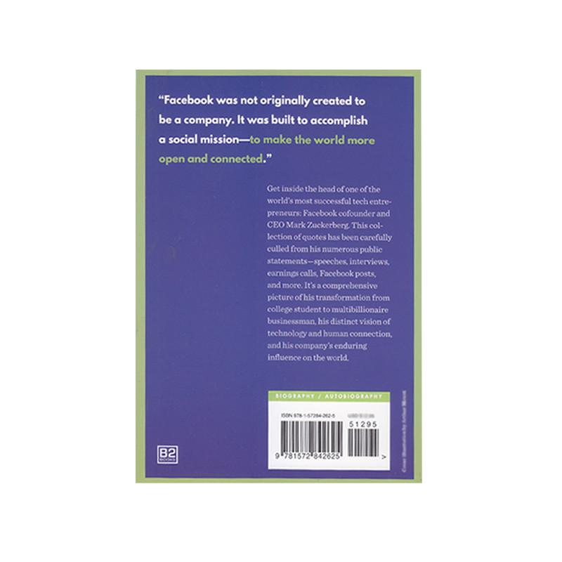 زاکربرگ بهدلیل تأسیس شرکت خود در یک اتاق خوابگاه در دانشگاه هاروارد بهسرعت به شهرت رسید. اشتیاق عمومی برای درک فیسبوک و بنیانگذار آن تقریبا سیریناپذیر بهنظر میرسد. کنجکاوی در مورد شخصیت و روش مدیریت زاکربرگ بسیار زیاد است؛ زیرا تصویرهای تخیلی هالیوود و زمزمههای والاستریت پرترهای عظیم از این مدیر جوان ترسیم کرده که در بهترین حالت تنها گوشهای از حقیقت است. زاکربرگ هم مانند بیل گیتس و استیوجابز ثابت کرده که یک استراتژیست محاسبهگر با تعهدی استوار به دیدگاه خود است. فیسبوک در جایی بین یک ابزار اجتماعی و مدلی از تجارت قرن بیست و یکم بهوجود آمد و شرکتهای فناوری نسل آینده را که هنوز آسیبدیده حباب دات کام اوایل دهه 2000 بودند، رهبری کرد. بهدلیل اجتناب ناپذیر بودن بازار جهانی که بر اساس فناوری رسانههای اجتماعی ساخته شده، فیسبوک به طور فزایندهای در حال رشد است. پتانسیل فیسبوک شناختهشده نیست، اما کلید موفقیت آن به ایدهها و دیدگاههای خود زاکربرگ بستگی دارد.