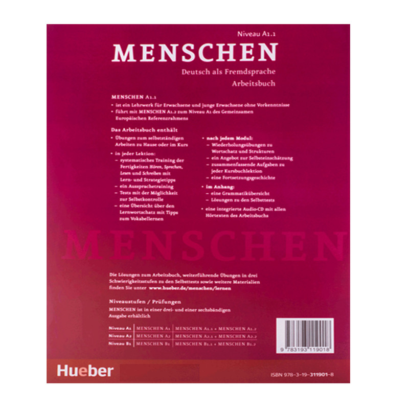 سری کتابهای منشن آلمانی (Menschen) از به روز ترین متد های آموزشی در زبان آلمانی میباشد که جایگزین خوبی از دیدگاه اساتید آلمانی برای کتاب های (Studio d) میباشد. سری کتاب های منشن (Menschen) توسط انتشارات مطرح و بین المللی (Max Hueber Verlag ) به چاپ رسیده است و میتوان گفت از سری کتابهای اول انتشارات آلمانی هوبر میباشد. کتابهای منشن طبق سیستم اروپایی از مقطع A1 تا B1 تعریف شده است. کتاب منشن زبان آل...