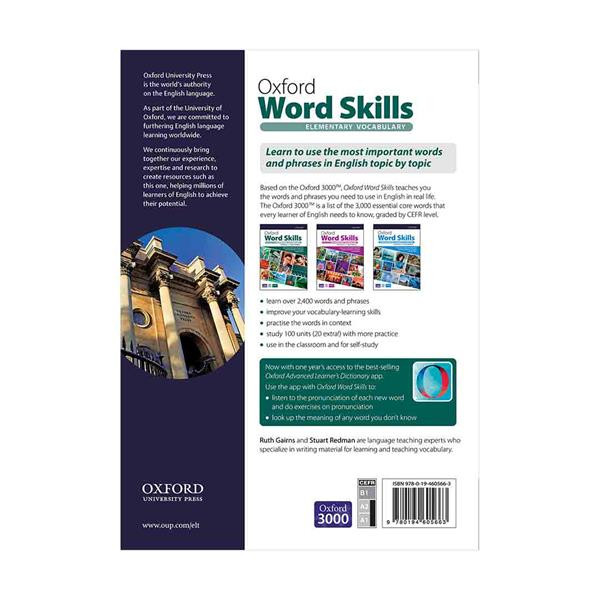 کتاب حاضر سطح Elementary و پایه از آخرین ویرایش (ویرایش دوم) از سری کتابهای Oxford Word Skills می باشد که توسط «روث گیرنز» (Ruth Gairns) و «استوارت ردمن» (Stuart Redman) نوشته شدهاست. این مجموعه سالهاست که در کشورهای مختلف مورد استفاده قرار میگیرد و همچنان جزء یکی از بهترین منابع آموزشی زبان محسوب میشود و منبع غنی برای گسترش دامنه لغت زبان آموزان می باشد. سبک آموزشی کتاب Oxford Word Skills 2nd Edition Elementary بسیار سرگرمکننده و جذاب است و توضیحاتی که برای مفهوم هر واژه ارائه شده، کاملاً قابل درک است؛ علاوهبر این مثالهای مختلفی برای هر لغت وجود دارد که به درک بهتر مفهوم آن کمک شایانی میکند. این کتابها توسط انتشارات آکسفورد منتشر شده و در داخل کشور به چاپ رسیده است.