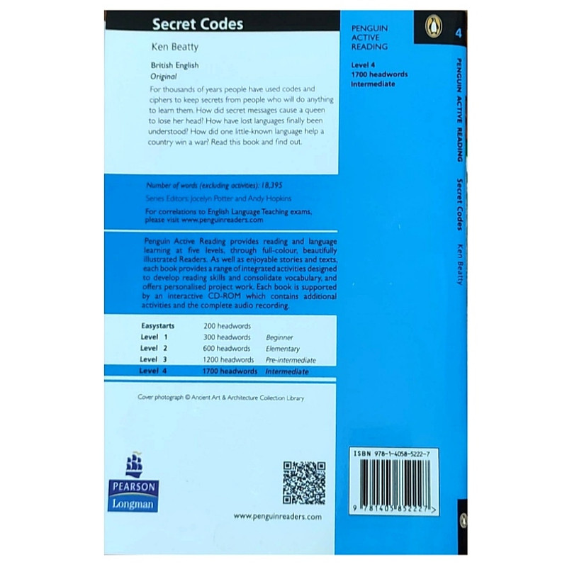 کتاب Penguin Active Reading Level 4 Secret Codes یکی از کتابهای داستانی (Readers) مجموعهی Penguin Active Reading است. این مجموعه برای نوجوانان در سطح Intermediate (B1) توسط انتشارات آکسفورد طراحی شده است.