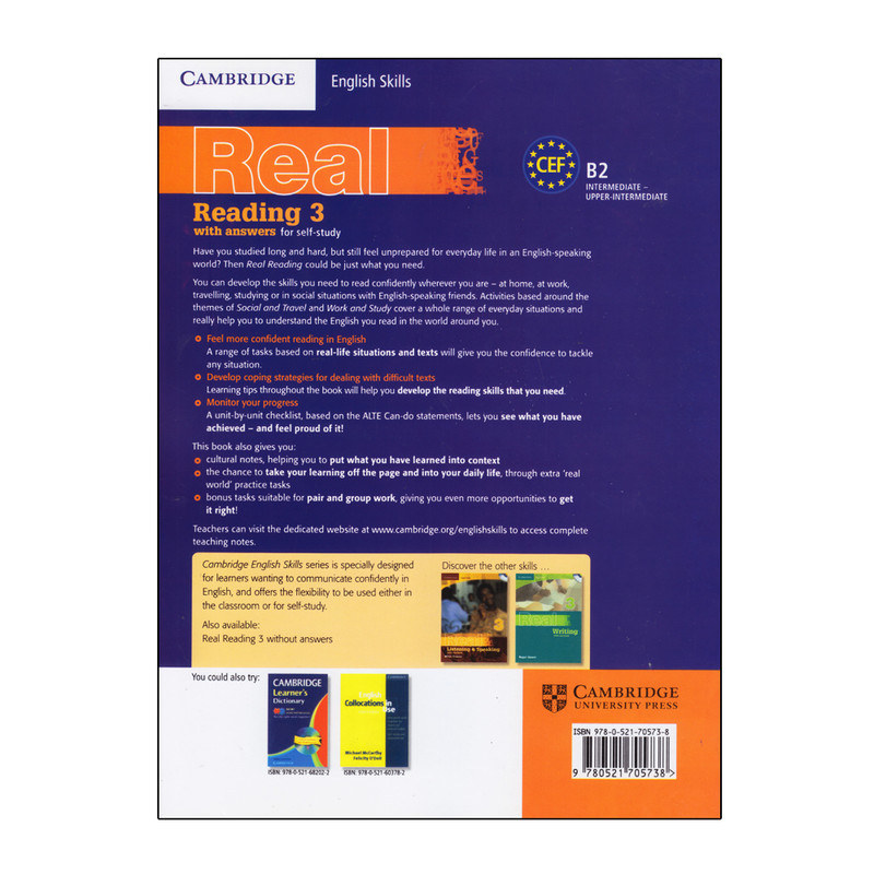 مجموعه حاضر براي بزرگسالان و نوجواناني که با اطمينان مايل به برقراري ارتباط با زبان انگليسي در هر کجا هستند مي باشد و شامل مطالبي از قبيل؛ در خانه، در محل کار، مسافرت، مطالع و يا معاشرت با دوستان انگليسي زبان است. از ويژگي هاي اين مجموعه فعاليت هاي تعاملي در سير کلاس، استفاده از مطالب واقعي و بالا بردن اعتماد به نفس زبان آموز مي توان نام برد. متن های این کتاب بر روی موضوعاتی همچون کار، تحصیلات، جامعه، سفر و غیره تمرکز دارند. نکات یادگیری که در کتاب وجود دارد به شما کمک می کند تا مهارت های لازم برای خواندن هر متنی را کسب کنید. تمرینات اضافی شما را تشویق میکند تا یادگیری را فراتر از صفحات کتاب ببرید و به شما متن هایی از دنیای واقعی برای تمرین بیشتر ارائه می دهد. یک چک لیست در اخر هر دست به شما کمک می کند تا بدانید چه چیز هایی را آموخته اید تا اعتماد به نفس بیشتری کسب کنید.