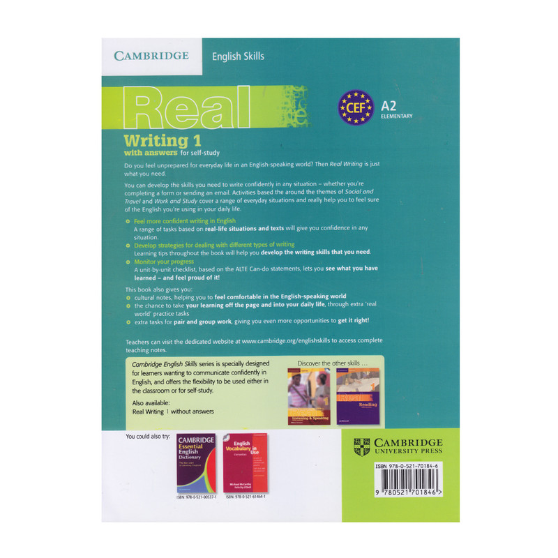 مجموعه Real Writing یک مجموعه 4 سطحی مناسب برای زبان آموزان جوان و بزرگ سال است که در سطوح ابتدایی تا پیشرفته هستند و می خواهند مهارت های نوشتاری خود را تقویت کنند. این کتاب ها به مهارت نوشتن پرداخته است و از ويژگي اين کتب ارائه مسائلي که در زندگي روزمره کاربرد دارد مانند در خانه، در محل کار، مسافرت، مطالعه، معاشرت و ... نمونه مثال و تمرين، تمرين هاي تعاملي به صورت گروهي يا دو نفره و آشنايي با افراد بومي از ديگر خصوصيات اين مجموعه است.
