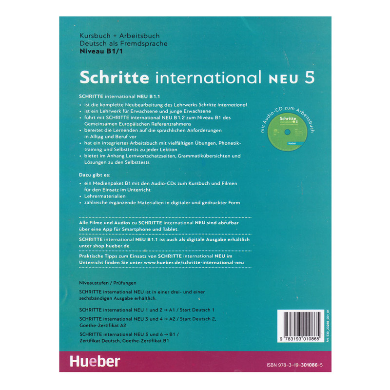 کتاب Schritte International Neu B1.1 از مجموعه کتب انتشارات Hueber میباشد که برای زبانآموزان بینالمللی طراحی شده است. پس از موفقیت چشمگیر سری Schritte این انتشارات تصمیم به چاپ سری جدید مطابق با سلیقهی افراد مختلف جهان گرفت. این مجموعه برای سطوح زبانی A1 تا B1 طراحی شده است. کتب Schritte International Neu با آموزش در چهارچوب مشترک اروپایی، داوطلبین را برای آزمونهایStart Deutsch آماده میکند. هر یک از کتابهای این سری شامل kursbuch و Arbeitsbuch میباشد.بخش Kursbuch این کتاب از 7 درس یا Lektion تشکیل شده است. شروع هر درس معمولا همراه با تصاویر مرتبط با موضوع همان درس میباشد. این تصاویر در دو صفحه ارائه شده و شامل بخش Hören میشود. تقویت مهارت شنیداری، یکی از مهمترین ملاکهای یادگیری زبان(همچون فراگیری زبان مادری) میباشد. در ادامه شما باید مثل نمونههای ارائه شده، دربارهی خودتان صحبت کنید. بدین ترتیب مهارت Sprachen شما نیز تقویت میشود. هر درس، به طور کلی، در قالب 5 بخش A تا E به تدریس جنبههای مختلف هر موضوع میپردازد. تمامی این آموزشها در بستر مکالمه یا تمرین میباشد. همین متد آموزشی، باعث یادگیری سریع، کاربردی و اصولی زبان آلمانی میشود.