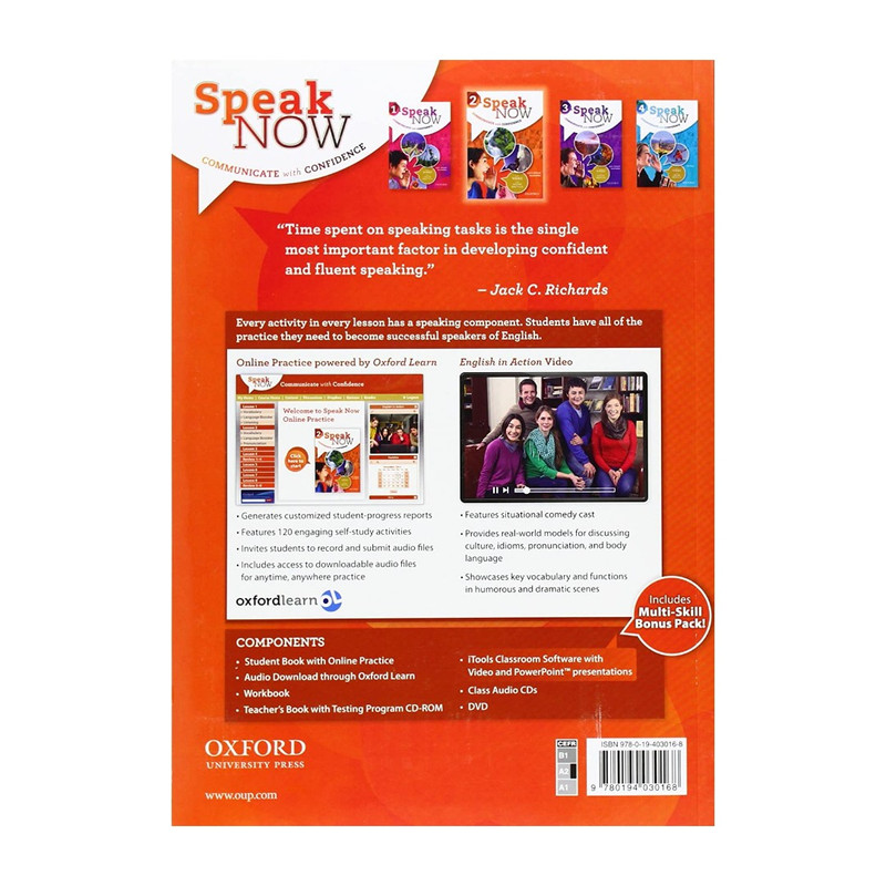 مجموعه Speak Now يک دوره چهار سطحي آموزش Speaking زبان انگليسي از انتشارات آکسفورد است که مهارت هاي برقراري ارتباط و مکالمه در کلاس درس و يا بيرون از کلاس درس را به زبان آموز آموزش مي دهد.