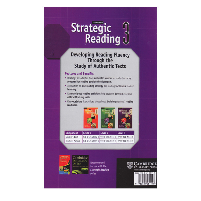 یکی از مهارت های بسیاری ضروری توانایی Reading می باشد. نویسنده بسیار مطرح Jack C. Richards به همراه Samuela Eckstut-Didier مجموعه ای را طراحی کرده اند که می تواند بسیاری از مشکلات شما را در مبحث Reading حل کند. این مجموعه در سه کتاب با سطح بندی متفاوت چاپ شده که می تواند سطح Reading شما را از Low intermediate به High intermediate ارتقاء دهد.هر کتاب شامل 12 فصل است که هر فصل متونی به روز و کاربردی از منابع معتبری به ما می دهد. هر متن کاملا مطابق با سطح مورد نظر می باشد که می تواند شما را بیش از پیش در افزایش این توانایی کمک کند. از جمله ویژگی های این مجموعه می توان به این موارد اشاره کرد: 1- وجود تمرینات سرعتی که به زبان آموزان کمک می کند تا متون را سلیس تر از قبل بخوانند. 2- بخش دستور العمل تدریس که نحوه تدریس، نکات فرهنگی، نکات مازاد لغتی را مطرح می کند 3- کوئیز های متنوع در پایان هر فصل.