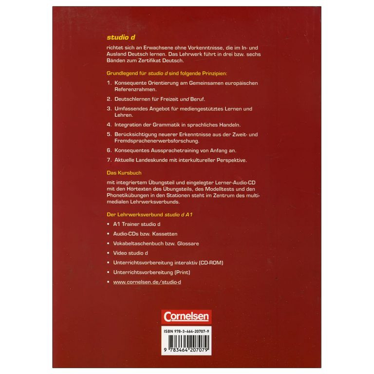 مجموعه Studio d شامل دو سطح جهت یادگیری زبان آلمانی می باشد که در ایران با کیفیت بالایی به چاپ رسیده و دارای سطوح A1 و A2 می باشد. در این قسمت کتاب دانش آموز و تمرین به همراه پاسخنامه، فایل های صوتی و فایل های تصویری Studio در اختیار علاقمندان به زبان آلمانی گذاشته می شود. هر یک از سطح های Studio دارای 12 درس است.