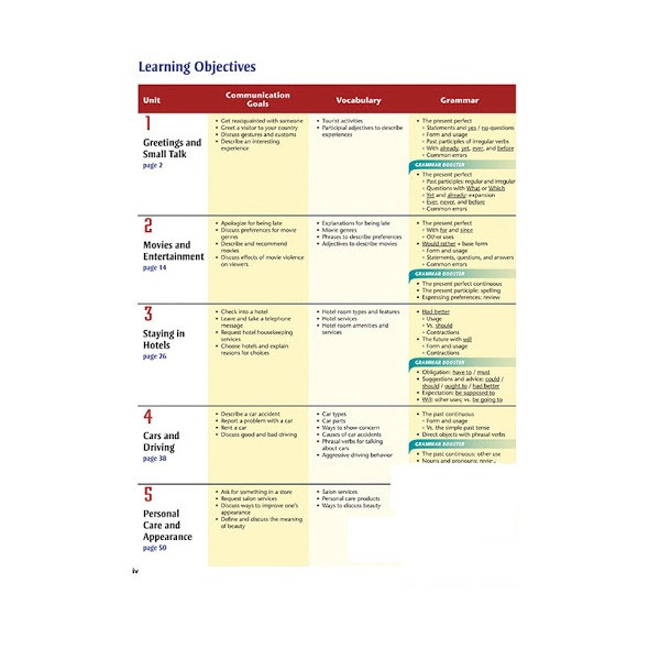 این کتابها که در ایران با کیفیت بالایی به چاپ رسیده اند ویژگی های فراوانی دارند ک میتوان به این موارد اشاره کرد: اولین ویژگی آنها طرح بندی و تمرکز کتاب بر سطح های متفاوت مثل Upper intermediate-Advanced می باشد. دومین ویژگی گسترده بودن و تنوع مباحث در امتداد فراگیری مهارت های Writing and Speaking می باشد. مجبور کردن شخص که نياز ها و کارهای مربوط به قسمت هاي مختلف زندگي را به طور کتبي و شفاهي بیان کند از ویژگی دیگر این کتابهاست.