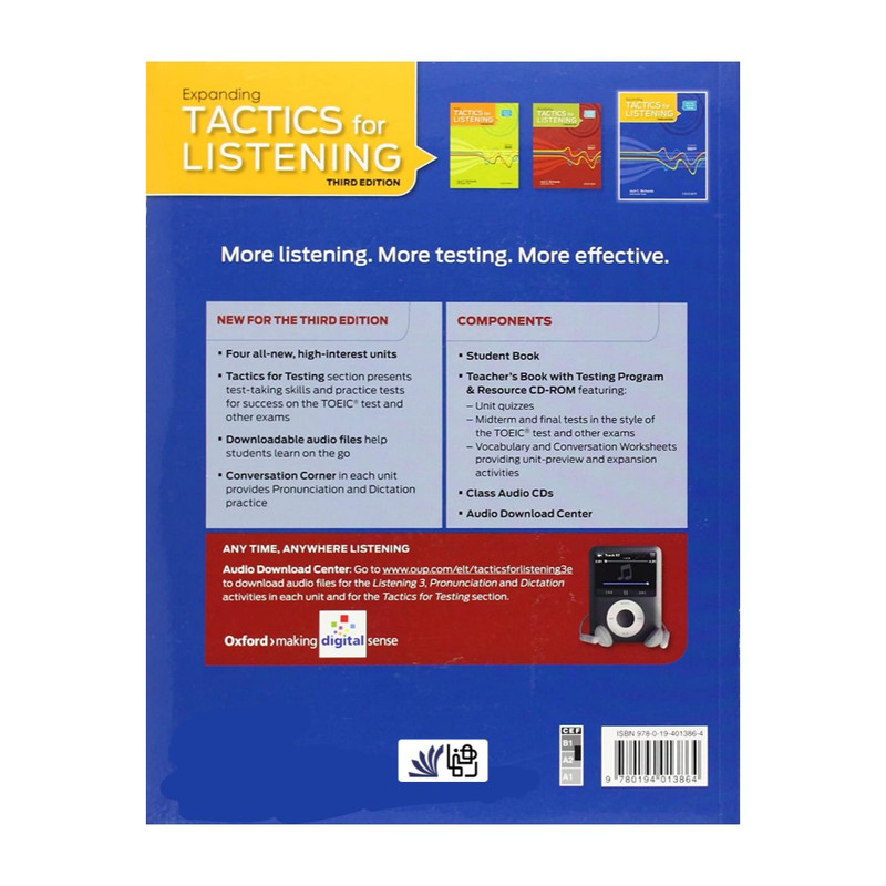 مجموعه 3 جلدی Tactics for Listening بهترین و ایده آل ترین مجموعه برای تقویت مهارت شنیداری دانش آموزان می باشد. یکی از بهترین مزایای این کتاب خودخوان بودن آن است . علاوه بر اینکه می توانید از آن در کلاس درس و در کنار کتاب های آموزشی اصلی برای بزرگسالان استفاده کنید به راحتی میتوانید آن را در خانه و بدون نیاز به معلم نیز استفاده کنید. متن کامل listening در کتاب جانبی (worksheet& audio script)...