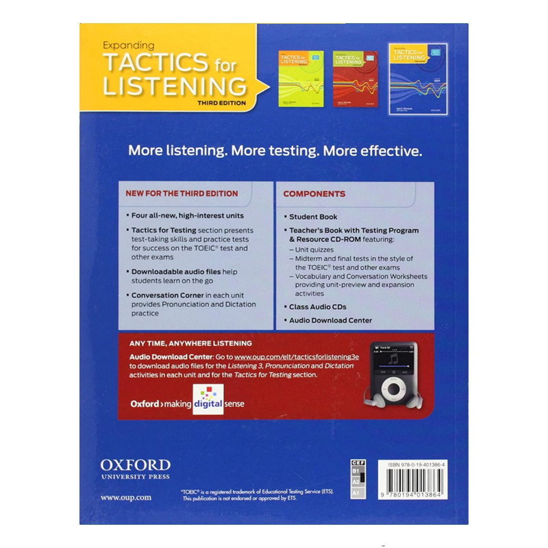 مجموعه 3 جلدی Tactics for Listening بهترین و ایده آل ترین مجموعه برای تقویت مهارت شنیداری دانش آموزان می باشد. یکی از بهترین مزایای این کتاب خودخوان بودن آن است . علاوه بر اینکه می توانید از آن در کلاس درس و در کنار کتاب های آموزشی اصلی برای بزرگسالان استفاده کنید به راحتی میتوانید آن را در خانه و بدون نیاز به معلم نیز استفاده کنید. متن کامل listening در کتاب جانبی (worksheet& audio script)...