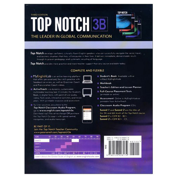Top Notchیک مجموعه قدرتمند و شناخته شده برای آموزش زبان انگلیسی با رویکرد ارتباطی(Communicative based) است که با اصولی علمی، تمرینات منظم و پالایش سیستماتیک اشکالات، یادگیری زبان انگلیسی را برای جوانان و بزرگسالان بسیار آسان کرده است و آن ها را برای تعامل با کسانی که انگلیسی را به عنوان زبان مادری یا زبان خارجی صحبت می کنند، آماده می سازد. این مجموعه شامل 4 سطح (Fundamental -3) می باشد که بر اساس استاندارد بین المللی CEFR، زبان آموزان را از سطح A1-B1 ارتقا می دهد. مجموعه فوق یادگیری زبان انگلیسی را با ارائه کامل نکات زبانی، تمرین فشرده و تکرار هدفمند تسهیل می نماید و مهمترین مزیت آن teacher friendly- student friendly بودن آن است ، شیوه تدریس شفاف و کاربرد ساختارهای ساده باعث شده که به یکی از کتاب های محبوب در بین مدرسین تبدیل شود.