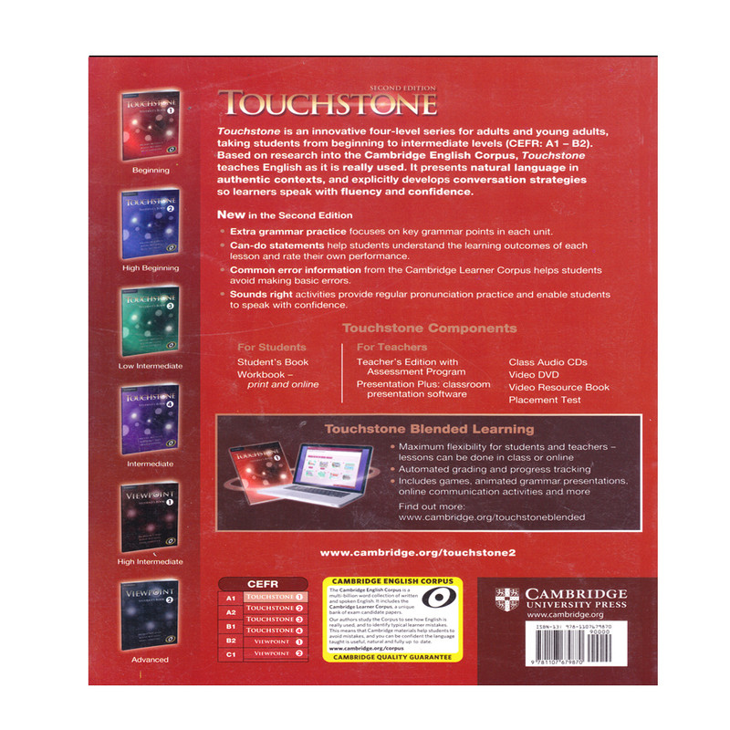 مجموعه Touchstone ویرایش دوم یک مجموعه آموزشی کامل مخصوص بزرگسالان است که در چهار سطح توسط نام دارترین نویسندگان حوزه آموزش زبان Michael McCarthy، Jeanne McCarten و Helen Sandiford تالیف و در انتشارات کمبریج به چاپ رسیده است. استراتژی مکالمات این کتاب بر مبنای عبارت پرتکرار، کاربردی و رایج در زبان انگلیسی بنا شده است . به همین دلیل شما بعد از پایان هر سطح به راحتی و با اعتماد به نفس می توانید درباره موضوعات روزمره کاملا روان و مسلط صحبت کنید. از طرفی وجود ابزارهای چند رسانه ای این مجموعه مانند نرم افزار خودآموز، فایل های ویدئویی و صوتی نه تنها جذابیت یادگیری را افزایش می دهد بلکه طیف وسیعی از محتوای آموزشی غنی و کاربردی را در اختیارتان قرار می دهد.
