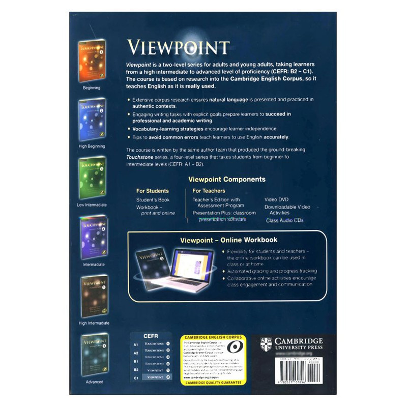 دوره آموزش زبان Viewpoint، چاپ انتشارت کمبریج می باشد و مجموعه ای کامل برای آموزش زبان انگلیسی به بزرگسالان و نوجوانان در سطح متوسط تا پیشرفته (B2-C1) است. این انتشارات چهار سطح اصلی با عنوان Touchstone و دو سطح در سطوح پیشرفته تر با نام Viewpoint منتشر نموده است که به عنوان مرجع تدریس در بسیاری از آموزشگاههای داخل و خارج از کشور مورد استفاده قرار می گیرد. هر سطح از این سری کتاب ها شامل 12 درس می باشد که موضوعات متنوعی در تمامی مهارت ها را به زبان آموز آموزش خواهد داد. براساس تحقیقات و بررسی های صورت گرفته از سوی دانشگاه کمبریج تاچ استون و ویو پوینت تا حد امکان زبان انگلیسی واقعی در زندگی روزمره را آموزش می دهد. این دوره به زبان آموز کمک می کند تا دانش مکالمه خود را تقویت ساخته تا از اعتماد به نفس بیشتری برخوردار شود. تاچ استون گرامر، واژگان، و استراتژی های مکالمه را برای برطرف ساختن نیازهای زبان آموز در زندگی مدرن امروزی آموزش می دهد .