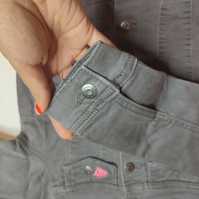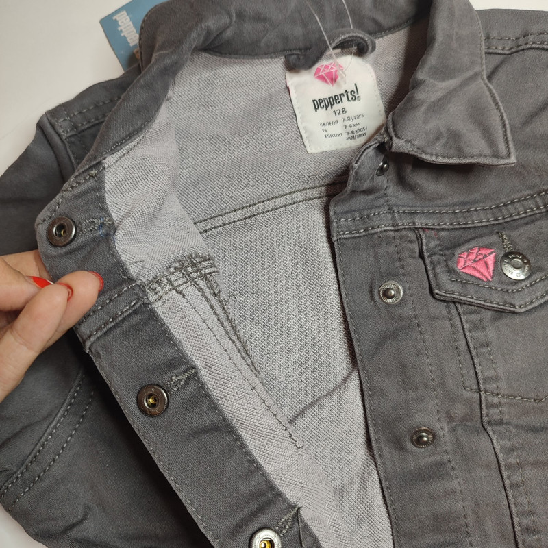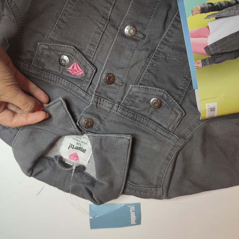 جزئیات مناسب 7 تا 8 سال عرض سینه بدون در نظر گرغتن کشسانی 36 قد کل از سرشانه 43 آستین از حلقه 47 از کنار یقه 53 کار جین کشی هست برند اورجینال آلمان دارای دکمه های فلزی مگنتی بسیار محکم
