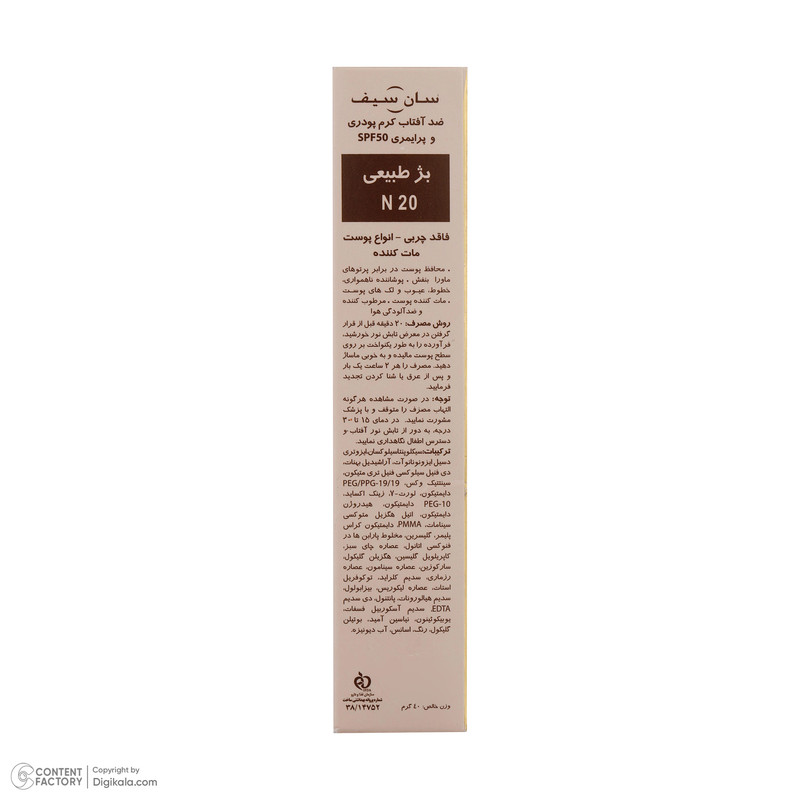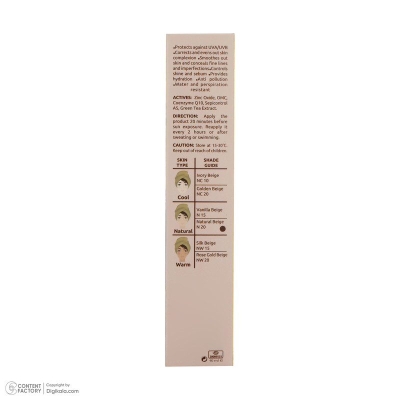 | سایر مشخصات | بژ طبیعی/ قابل استفاده بهعنوان پرایمر و کرمپودر |