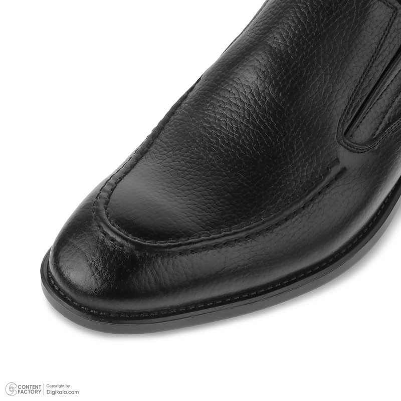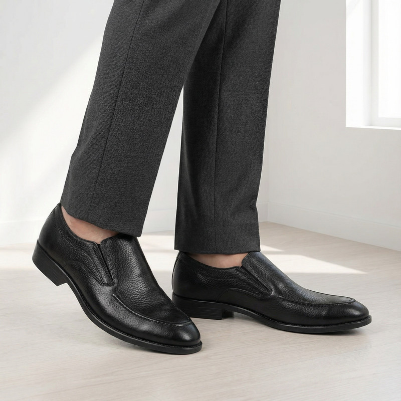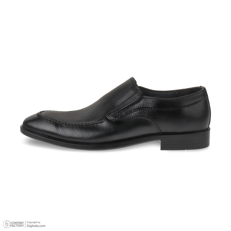 کفش چرمی مردانه مدل ارگ 5 یک کفش رسمی/نیمهرسمی با طراحی کالج (لوفر) است که در شهر تبریز و با استفاده از چرم طبیعی تولید میشود. رویهی کفش به رنگ مشکی و از چرم طبیعی با بافت ریز ساخته شده است. فرم کشیدهی پنجه و دوخت حاشیهای روی آن، این مدل را برای استفاده همراه با کتوشلوار و شلوارهای پارچهای مناسب میکند. در بخش رویه، کشهای جانبی تعبیه شده که پوشیدن و درآوردن کفش را آسانتر میکند و در عین حال، قرارگیری کفش روی پا را بهبود میدهد.