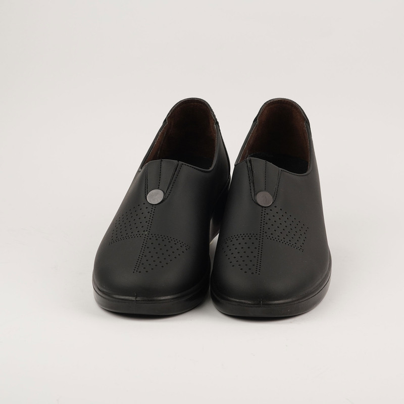 این کفش زنانه دارای طراحی ساده و شیک بوده و برای استفاده روزمره گزینهای ایدهآل محسوب میشود. رویهی آن از جنس چرم مصنوعی با کیفیت بالا ساخته شده که علاوه بر دوام، راحتی قابل توجهی را برای پا فراهم میکند. قسمت جلوی کفش دارای سوراخهای ریز برای تهویه بهتر هوا است که مانع از تعریق بیش از حد پا میشود.