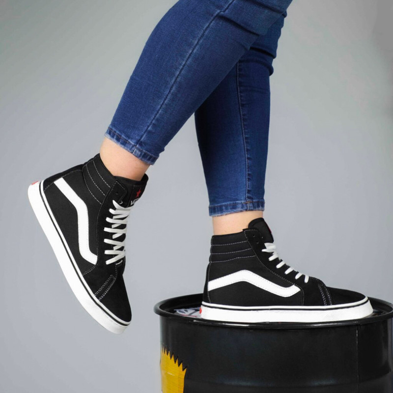 کفش جذاب و خاص ساقدار رنگ مشکی سفید یکی از پرفروش ترین کفش هاست و در مجالس و روزمره مورد استفاده قرار میگیرد.