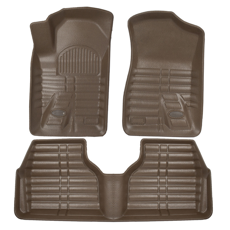 (کفپوش سه بعدی اکونومی ) محصول فوق کفپوش سه بعدی اتاق به همراه کفپوش صندوق مناسب برای انواع سمند سورن تک سوز میباشد و رنگ بندی درج شده در ان مربوط به کفپوش اتاق میباشد و کفپوش صندوق تنها به صورت رنگ مشکی میباشد. در این کفپوش ها از مواد اولیه درجه یک پلی اتیلن برای رویه و نمد برای پشت کار استفاده شده است طراحی این کفپوش به شکلی بوده که به آن ظاهری سه‌بعدی بخشیده است. کفپوش فوق دارای سه تکه‌ی مجزا بوده که دو تکه برای قسمت جلوی خودرو بوده و قسمت یک‌تکه‌ی بزرگ برای قرارگرفتن در بخش عقبی خودرو طراحی شده است. این کفپوش به‌خوبی کف خودرو را پوشش می‌دهد و مانع از خوردگی و ساییدگی آن می‌شود. این محصول به دلیل طراحی مناسبی که دارد، به‌راحتی نمی‌لغزد و به‌خوبی در جای خود قرار می‌گیرد. لطفا کفپوش های فابریک خودرو را خارج کنید تا برای کفپوش سه بعدی مزاحمت ایجاد نشود/