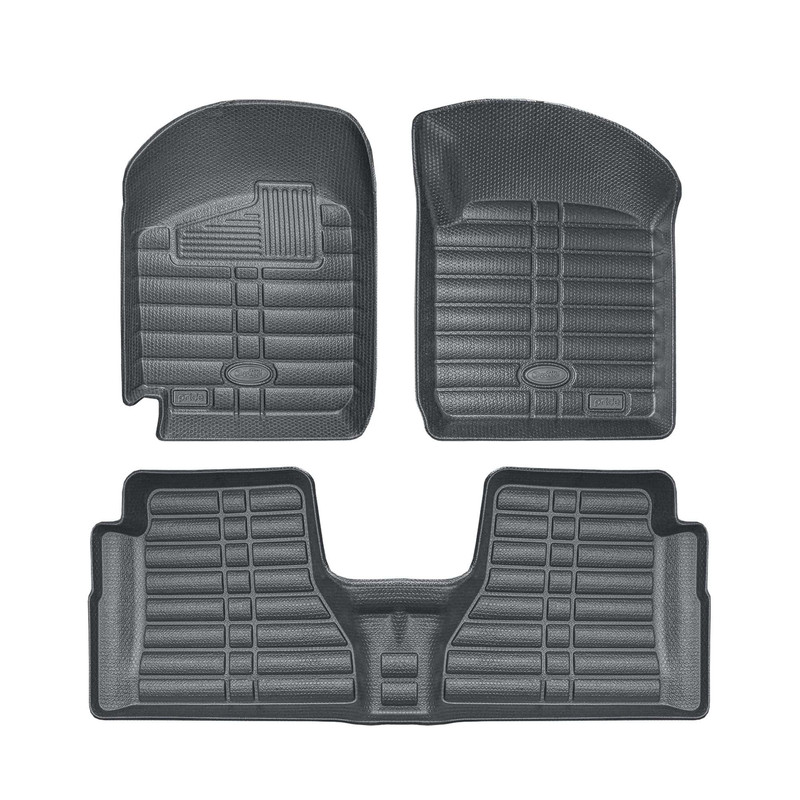 (کفپوش سه بعدی اکونومی ) محصول فوق کفپوش سه بعدی اتاق به همراه کفپوش صندوق خودروی پراید 141 میباشد و رنگ بندی درج شده در ان مربوط به کفپوش اتاق میباشد و کفپوش صندوق تنها به صورت رنگ مشکی میباشد. در این کفپوش ها از مواد اولیه درجه یک پلی اتیلن برای رویه و نمد برای پشت کار استفاده شده است طراحی این کفپوش به شکلی بوده که به آن ظاهری سهبعدی بخشیده است. کفپوش فوق دارای سه تکهی مجزا بوده که دو تکه برای قسمت جلوی خودرو بوده و قسمت یکتکهی بزرگ برای قرارگرفتن در بخش عقبی خودرو طراحی شده است. این کفپوش بهخوبی کف خودرو را پوشش میدهد و مانع از خوردگی و ساییدگی آن میشود. این محصول به دلیل طراحی مناسبی که دارد، بهراحتی نمیلغزد و بهخوبی در جای خود قرار میگیرد. لطفا کفپوش های فابریک خودرو را خارج کنید تا برای کفپوش سه بعدی مزاحمت ایجاد نشود/