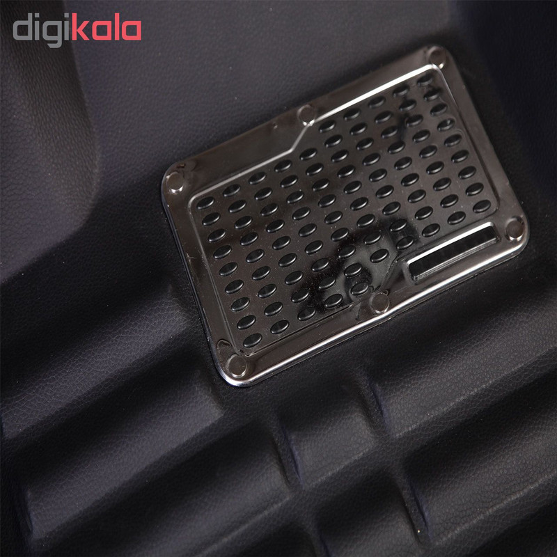 کفپوش فوق برای خودروی رانا است. یکی از نقاط قوت این کفپوش جنس مواد بهکار رفته در ساخت آن است. این کفپوش از چرم ساخته شده و از کیفیت بالایی برخوردار است. طراحی این کفپوش به شکلی بوده که به آن ظاهری سهبعدی بخشیده است. کفپوش فوق دارای سه تکهی مجزا بوده که دو تکه برای قسمت جلوی خودرو بوده و قسمت یکتکهی بزرگ برای قرارگرفتن در بخش عقبی خودرو طراحی شده است. چرم بهکار رفته در این کفپوش با روکشهای چرم خودرو همخوانی بالایی خواهد داشت و موجب زیبایی هرچه بیشتر فضای داخل کابین خواهد شد. این کفپوش به خوبی کف خودرو را پوشش میدهد و مانع از خوردگی و ساییدگی آن میشود. این محصول به دلیل طراحی مناسبی که دارد، بهراحتی نمیلغزد و بهخوبی در جای خود قرار میگیرد
