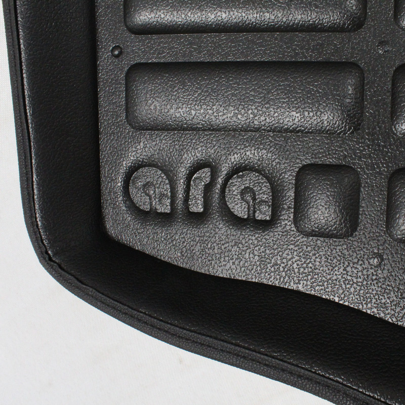 محصول فوق در کارخانجات اطلس رنگین آرا تولید می شود این مدل کفپوش ها از سه لایه تشکیل مشوند: جنس رویه آن چرم مصنوعی است که ظاهر بسیار زیبایی دارد و همخوانی زیادی با کابین خودرو دارد ،جنس میانی از EVA که بسیار نرم و انعطاف پذیر است و جنس زیری آن حالت نمدی دارد تا از لغزش آن در کف صندوق جلو گیری و باعث استحکام ان شود ، کاملا ضد آب است و قابلیت شست و شو دارد دارای لبه پنج سانتی متری می باشد که به طور کامل از ریختن و نفوذ مایعات به کف خودروی شما جلو گیری می کند _ وجه تمایز این مدل نسبت به سایر کفپوشها نرمی و ضخامت بالای ان میباشد تا از سُر خوردن اجسام روی آن جلو گیری شود.