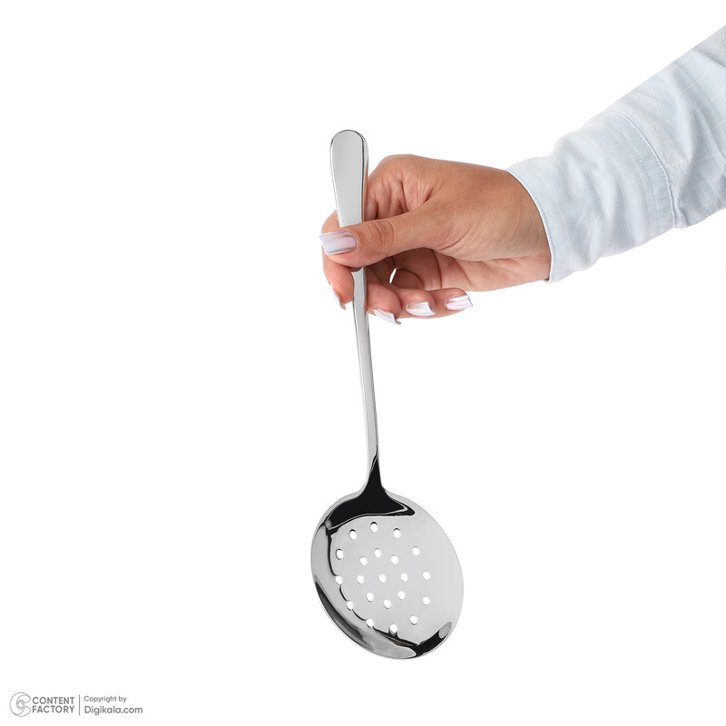 کفگیر گرد " رزالی " با طراحی روز دارای کیفیت بالای جنس ، طراحی زیبا ، استحکام محصول و رنگ استیل براق خود برای سرو و پذیرایی بسیارخوشدست و شیک و مناسب میباشد و با داشتن سوراخ های منظم در کفه خود برای سرخ کردن مواد غذایی کاربردی میباشد.