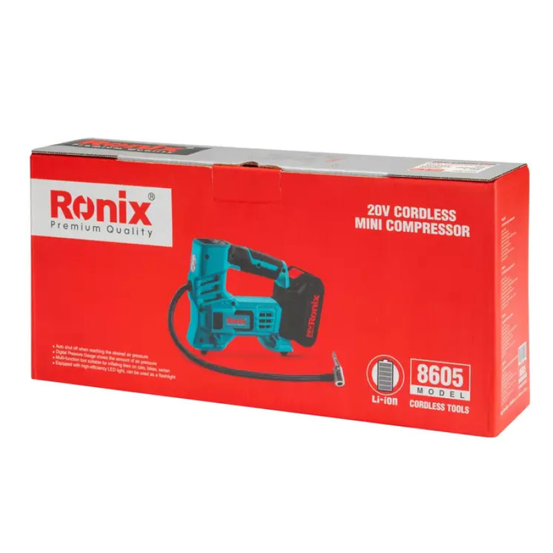 سایر توضیحات | پمپ و موتور با راندمان بالا برای توانایی واقعی 150 PSI یک دستگاه چندکاره مناسب برای باد کردن لاستیک خودرو، دوچرخه و غیره همراه با رابط های مختلف دارای مکانیزم قطع کن خودکار دارای صفحه نمایش دیجیتال مجهز به چراغ LED پرنور پایه های پهن برای ثبات بیشتر سری 86 رونیکس (باتری های 20 ولت محصولات سری 86 رونیکس با این دستگاه سازگار است) ساخت کشور چین |