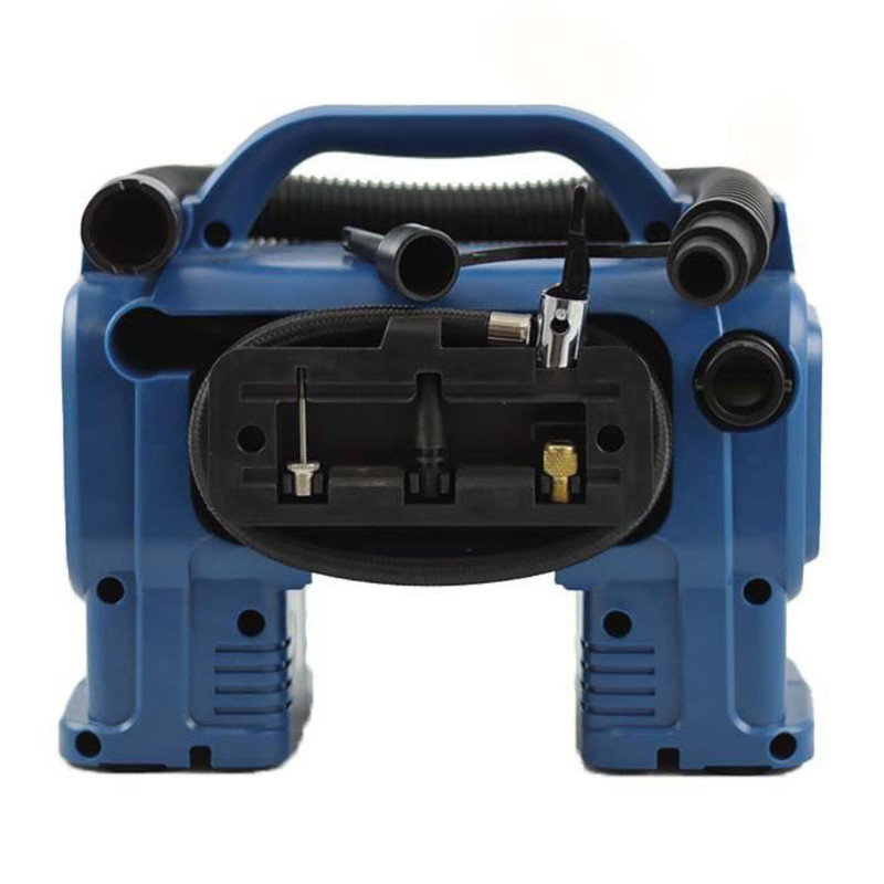 توان 12 ولت فندکی-وزن خالص 1.5 کیلوگرم-دارای کابل و دو شاخه 3 متری-مجهز به نمایشگر دیجیتال داخلی چند منظوره-کارکرد با فشار دیجیتال 11 بار در حالت بیشینه-مجهز به شلنگ 790 میلیمتری و شلنگ مخروطی 360 میلیمتری-همراه با یک عدد تبدیل، یک شلنگ کم فشار، یک سوزن توپ ورزشی و یک تبدیل مخروطی