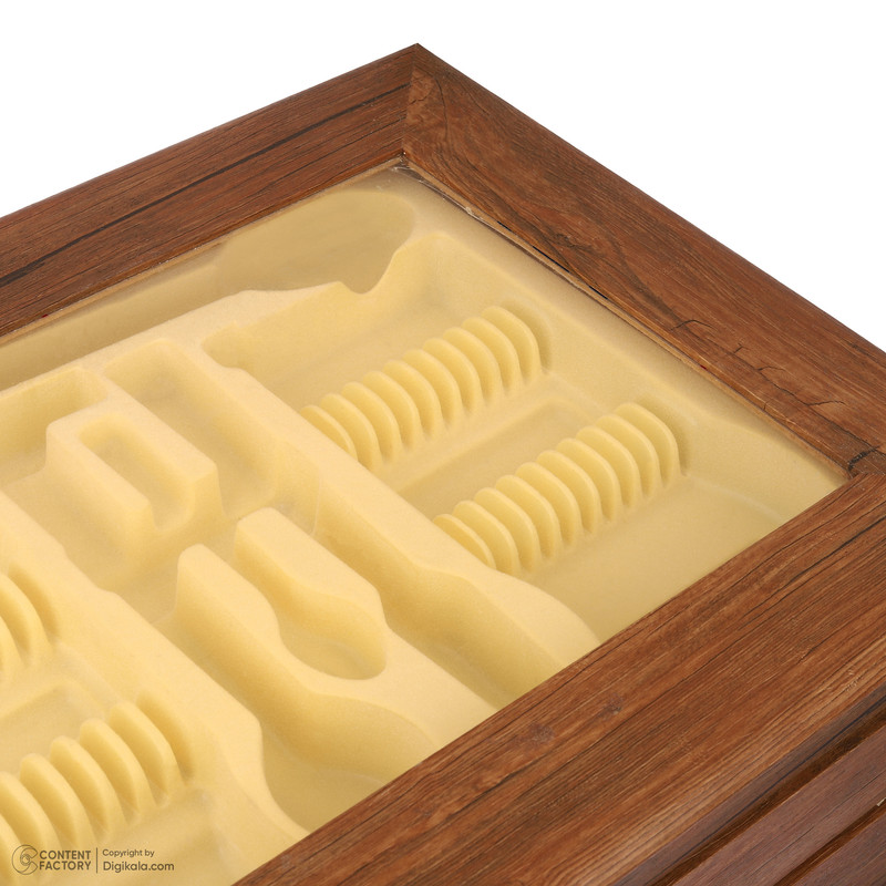 سایر توضیحات | جنس بدنه چوب دارای سه کشو مناسب برای سرویس های 119 تا 158 پارچه. |