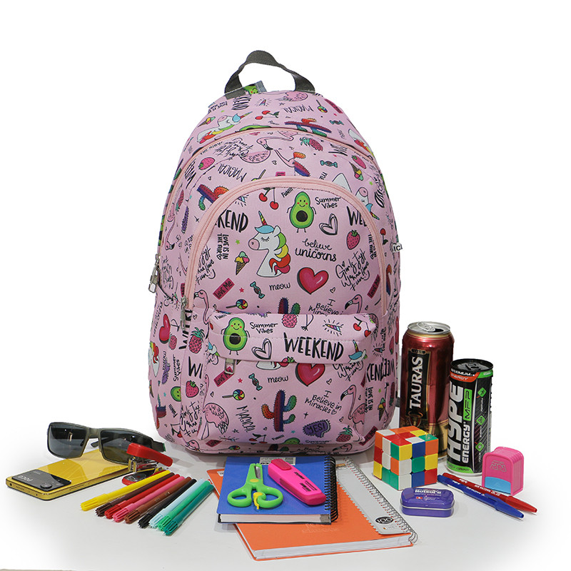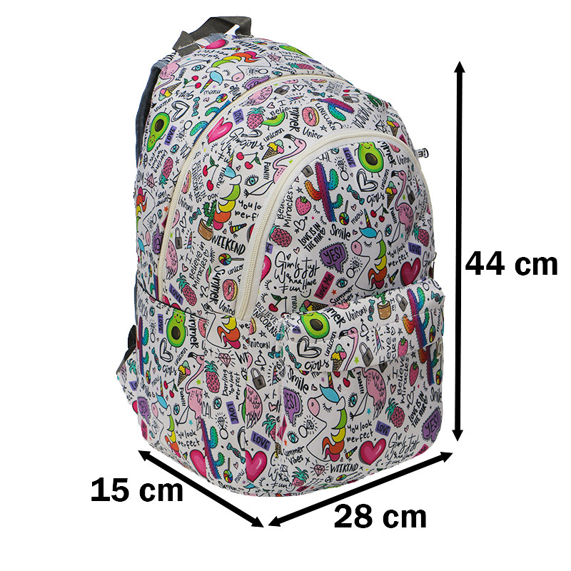 کوله پشتی دخترانه مدل NHH-150003 باتوجه به زیبایی، کیفیت و وزن سبک خود گزینهی خوبی برای استفادهی شما خواهد بود. جنس بدنه از پارچه پلی استر مرغوب است که مقاومت خوبی دربرابر پارگی و پوسیدگی دارد و همچنین ضدآب است. همین ویژگی پارچه باعث میشود که کولهپشتی از دوام و عمر خوبی برخوردار باشد و با خیالی راحت بتوانید برای مدتها از آن استفاده کنید. ابعاد و اندازهی درنظرگرفتهشده برای این محصول نیز به حدی بوده که مناسب شما برای قرار دادن وسایل روزمره ، کتاب و .... باشد. برای حمل این کوله یک دسته در قسمت بالا و دو بند در پشت قرار دارند. بندهای دوشی دارای قابلیت تنظیم هستند که باعث راحتی بیشتر در زمان حمل کولهپشتی میشوند. این محصول دارای دو جیب در طرفین کولهپشتی برای قرار دادن آب ونوشیدنی است. این کوله دارای4 جیب خارجی است. اگر به دنبال کوله پشتی با طراحی منحصر به فرد و وزن سبک هستید در انتخاب مدل NHH-150003 شک نکنید.