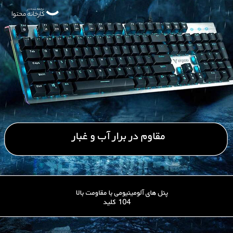 رپو (Rapoo) پس از تجربیات فروان حالا توانسته به تدریج نامی برای خود در زمینه ی محصولات گیمینگ فراهم کند و اگر تا دیروز این شرکت را با تولید محصولات اداری و خانگی می شناختیم امروز سری V محصولات این شرکت که مختص به محصولات گیمینگ است به رقیبی قابل توجه برای برندهای دیگر تبدیل شده است. یکی از این محصولات کیبورد گیمینگ V530 است. اساسا کیبورد و موس اسلحه ی گیمرهای pc باز ست. این کیبورد از نوع کیبوردهای مکانیکال و با سوییچ آبی است که عملا زمان پاسخگویی را بسیار کاهش داده است و قابلیت نور پس زمینه آبی را هم دارد و از 104 کلید و با عمر تخمینی 60 میلیون کلیک بهره می برد. بدنه این کیبورد از آلومینیوم ساخته شده است. نکته جالب دیگر در این کیبورد ضد آب بودن و آسانی در جابجایی و یا بیرون آوردن دکمه هاست. چرا که بسیاری از گیمرهای حرفه ای برای جلوگیری از کلیک های اشتباه دکمه هایی را که مورد استفاده نیست را خارج می کنند و این قابلیت در V530 به راحتی انجام پذیر است